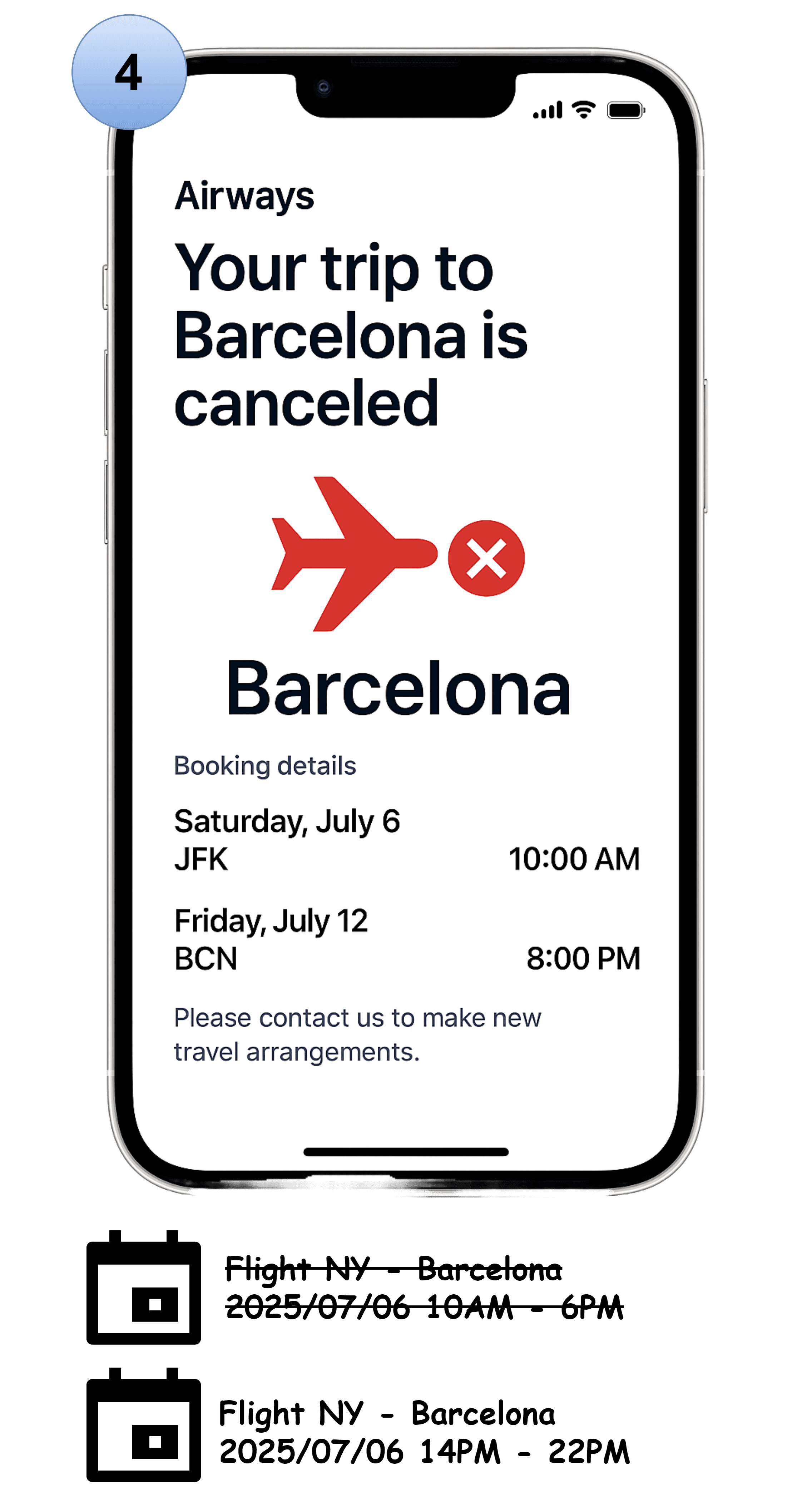 The user uploads a screenshot showing the flight has been cancelled.